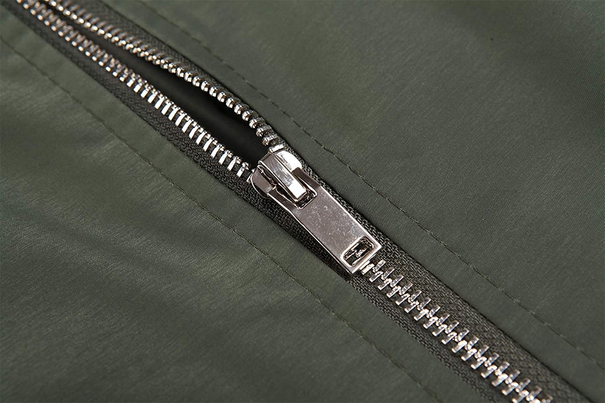 2. Hip length with a flattering straight cut fit, zipper closure, long sleeve, rib collar, cuff and hem, functional pocket. A versatile bomber jacket that can be dressed up or worn casually.