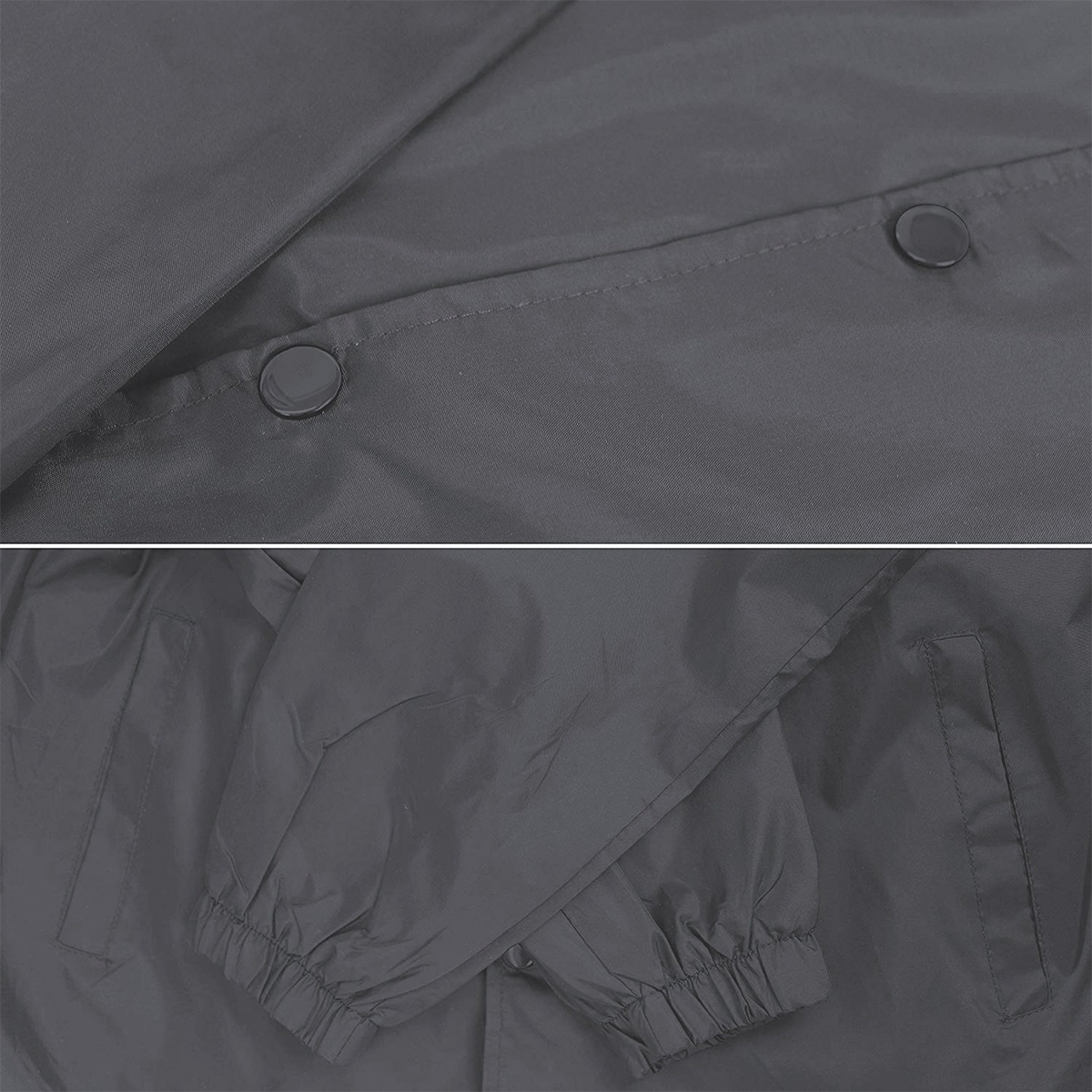 This premium coach jacket features a spread collar, long sleeves, banded cuffs, two front slit pockets and a front button fastening with adjustable tabs at the waist.