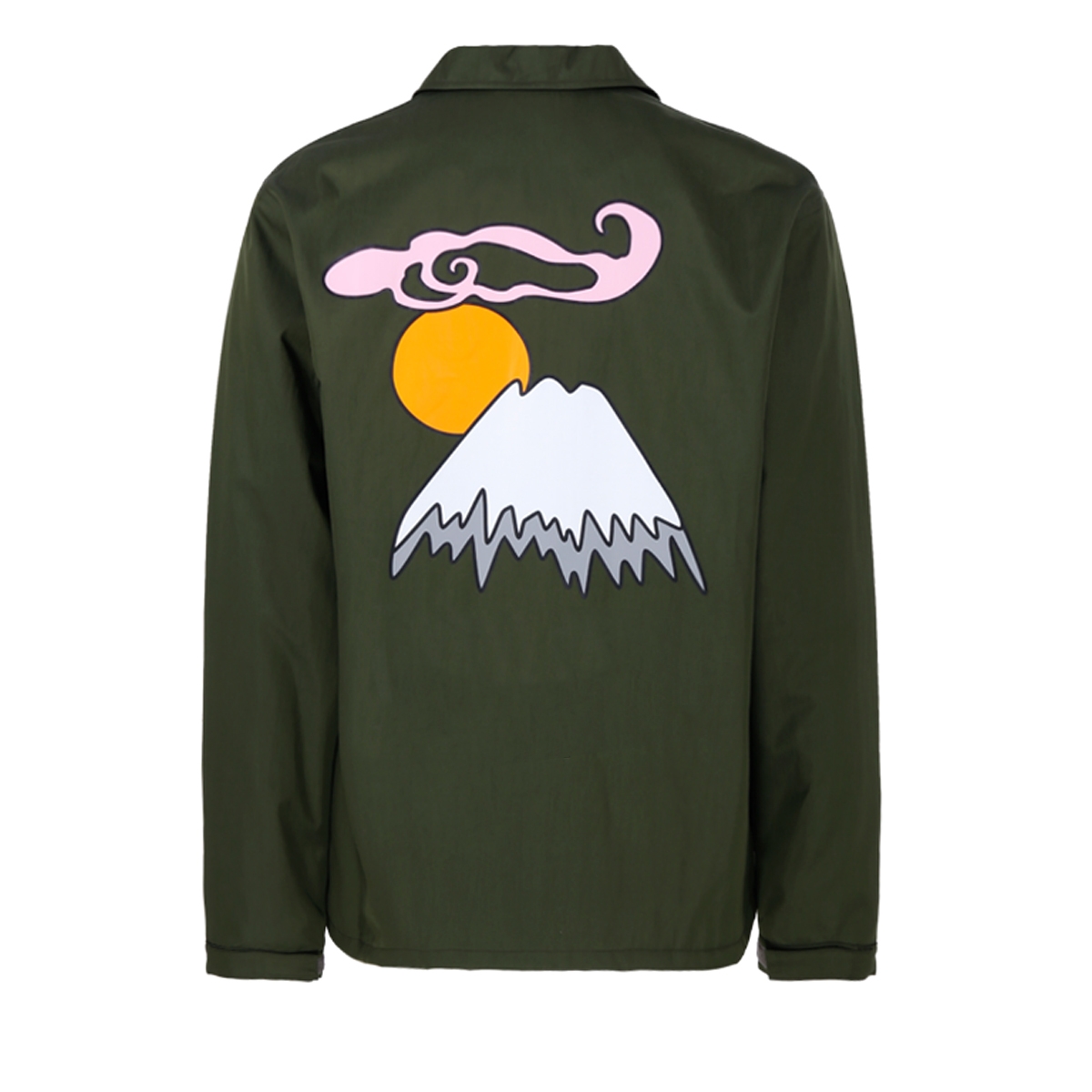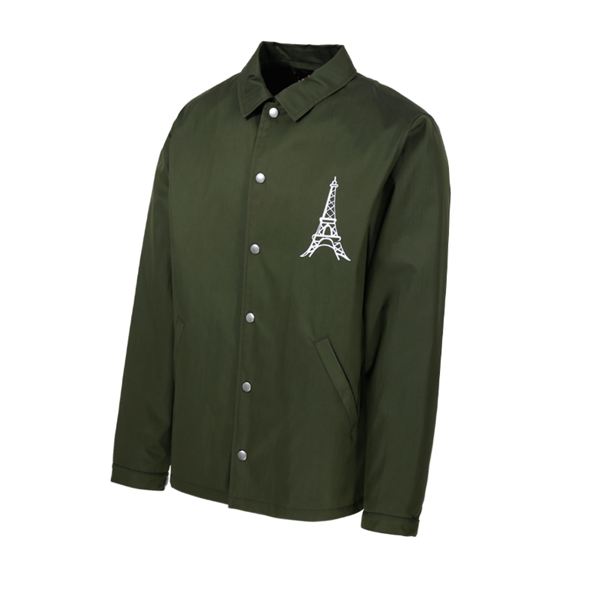 This premium coach jacket features a spread collar, long sleeves, banded cuffs, two front slit pockets and a front button fastening with adjustable tabs at the waist.