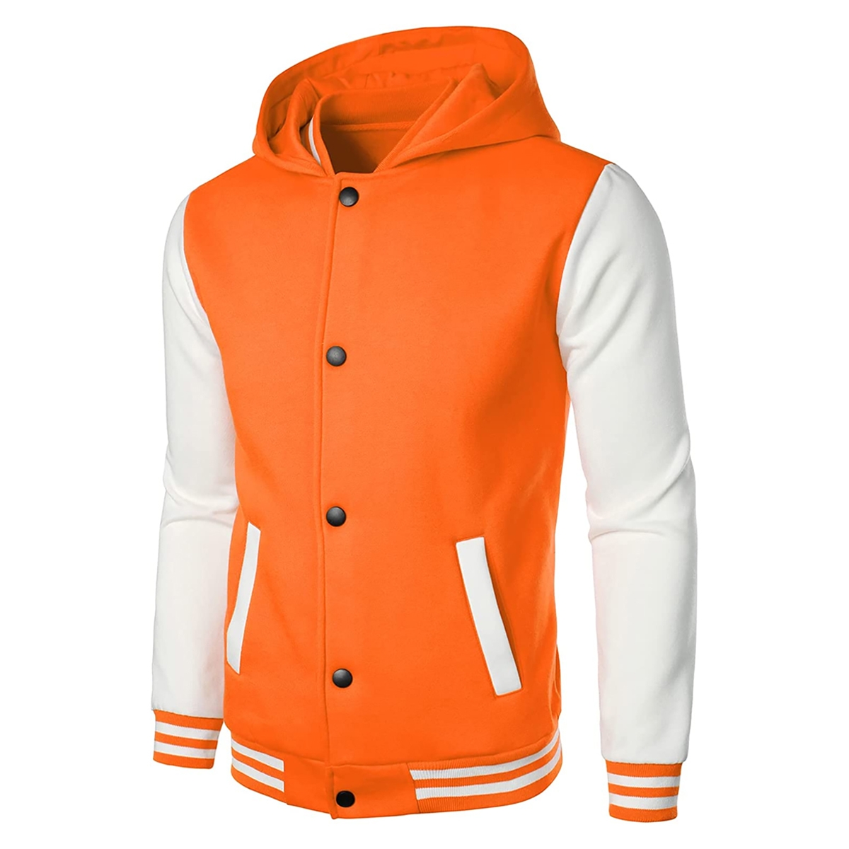 Stylish Design: Contrast long sleeves, ribbed stand collar, cuffs and hem. New hooded design make it more fashionable. Two side pockets